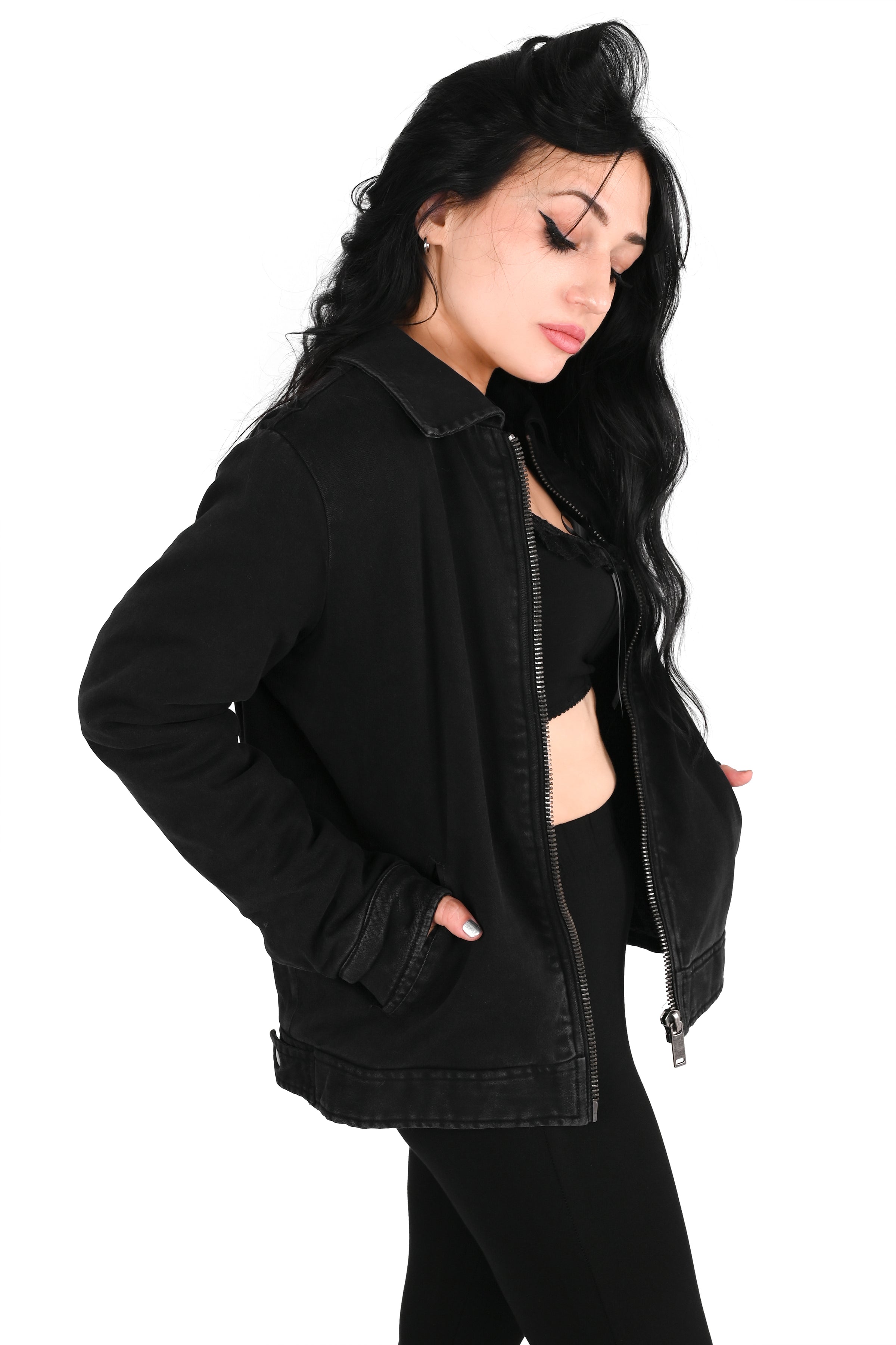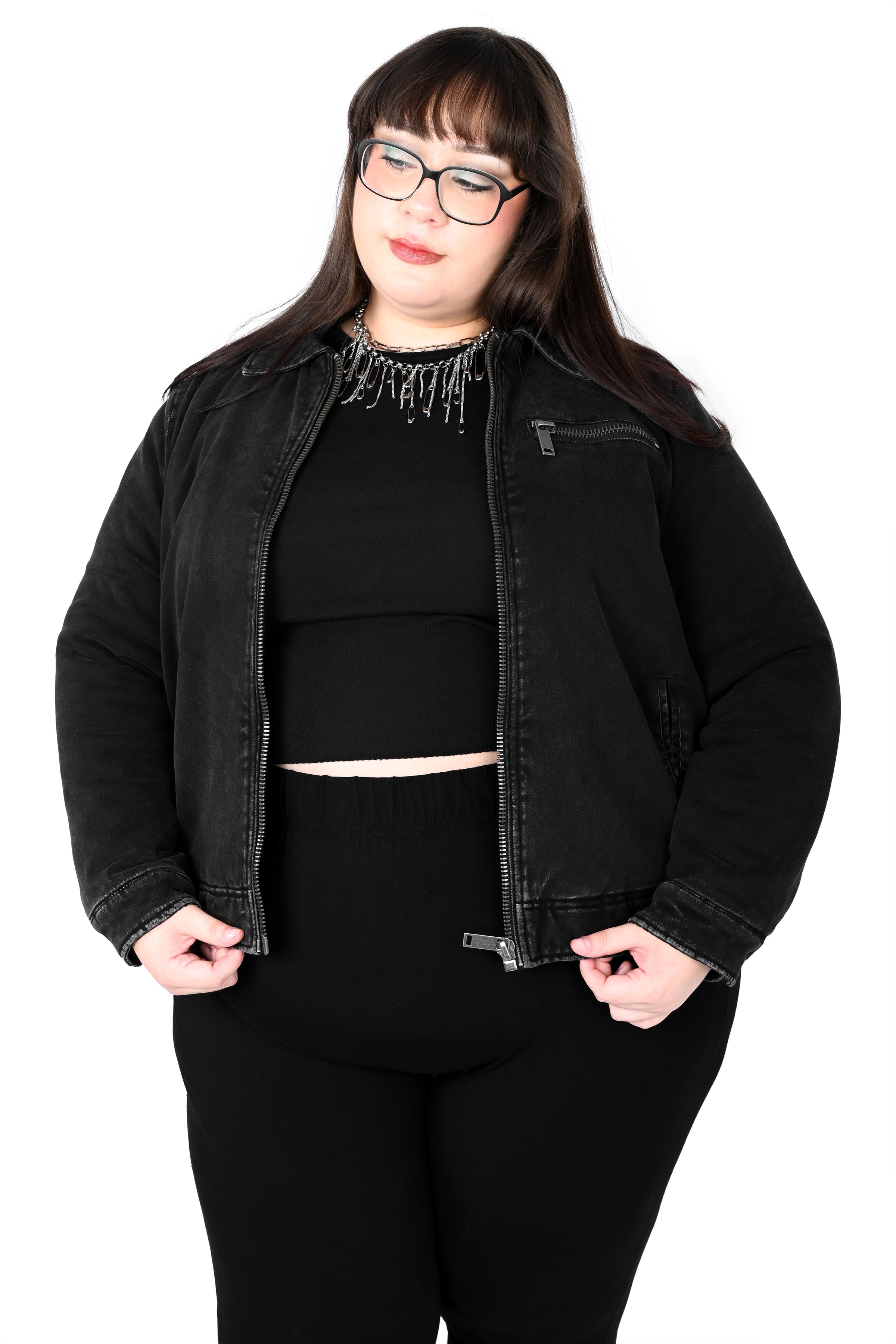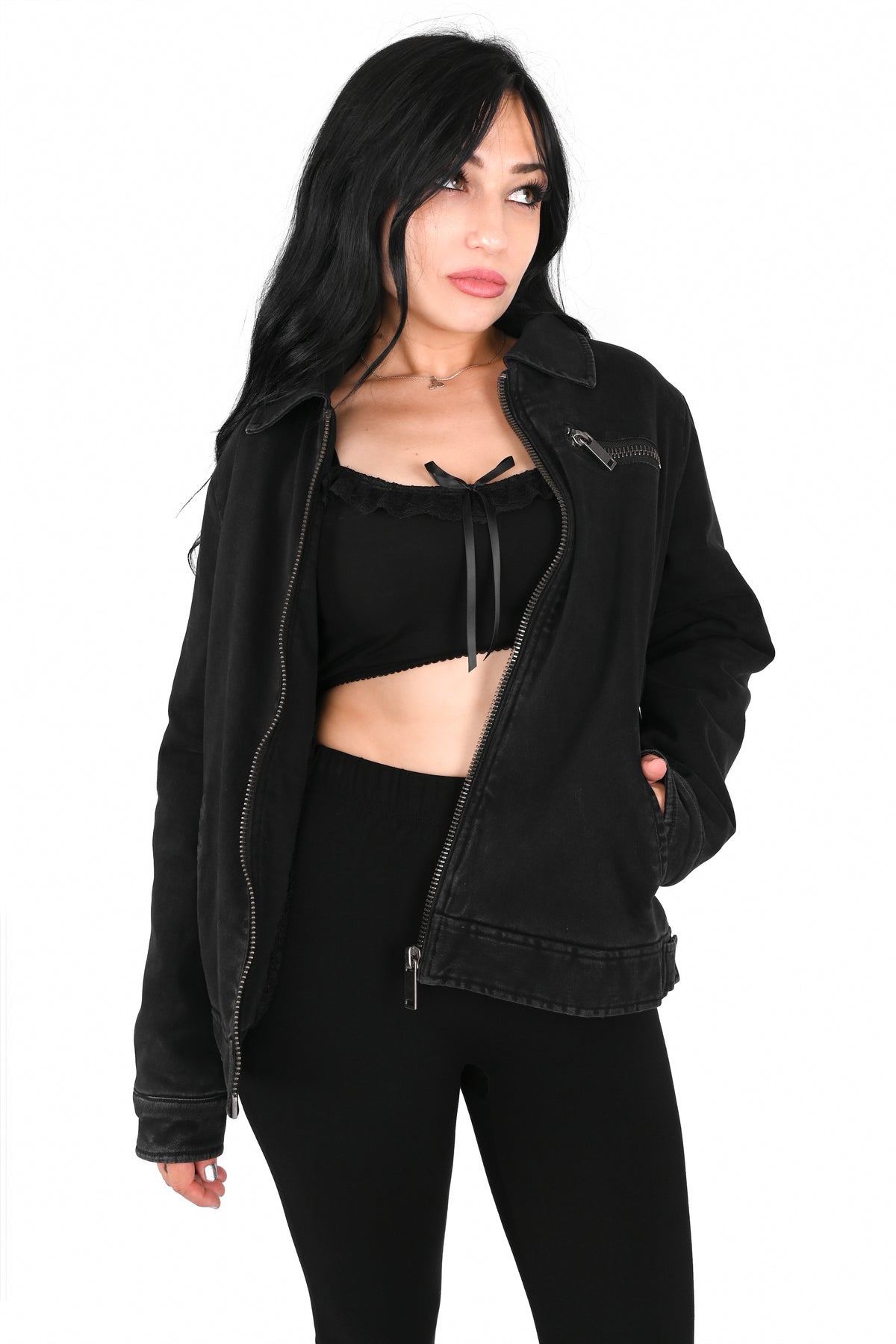 This work jacket is made out of a grey wash denim and lined in a super soft faux sherpa lining.