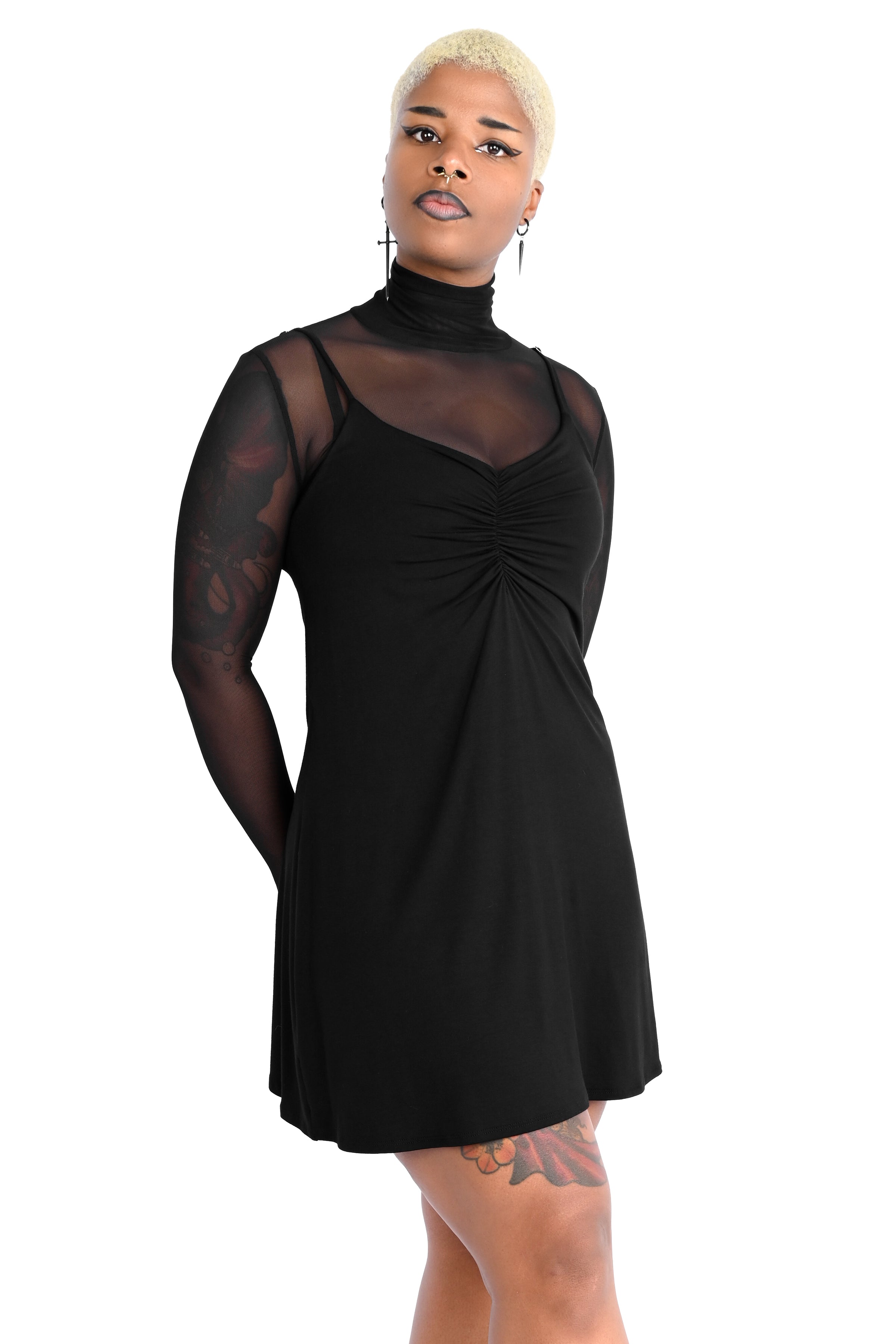 Flattering ruched front makes this dress so versatile. Wear this on its own or over a band tee, a mesh long sleeve top etc.