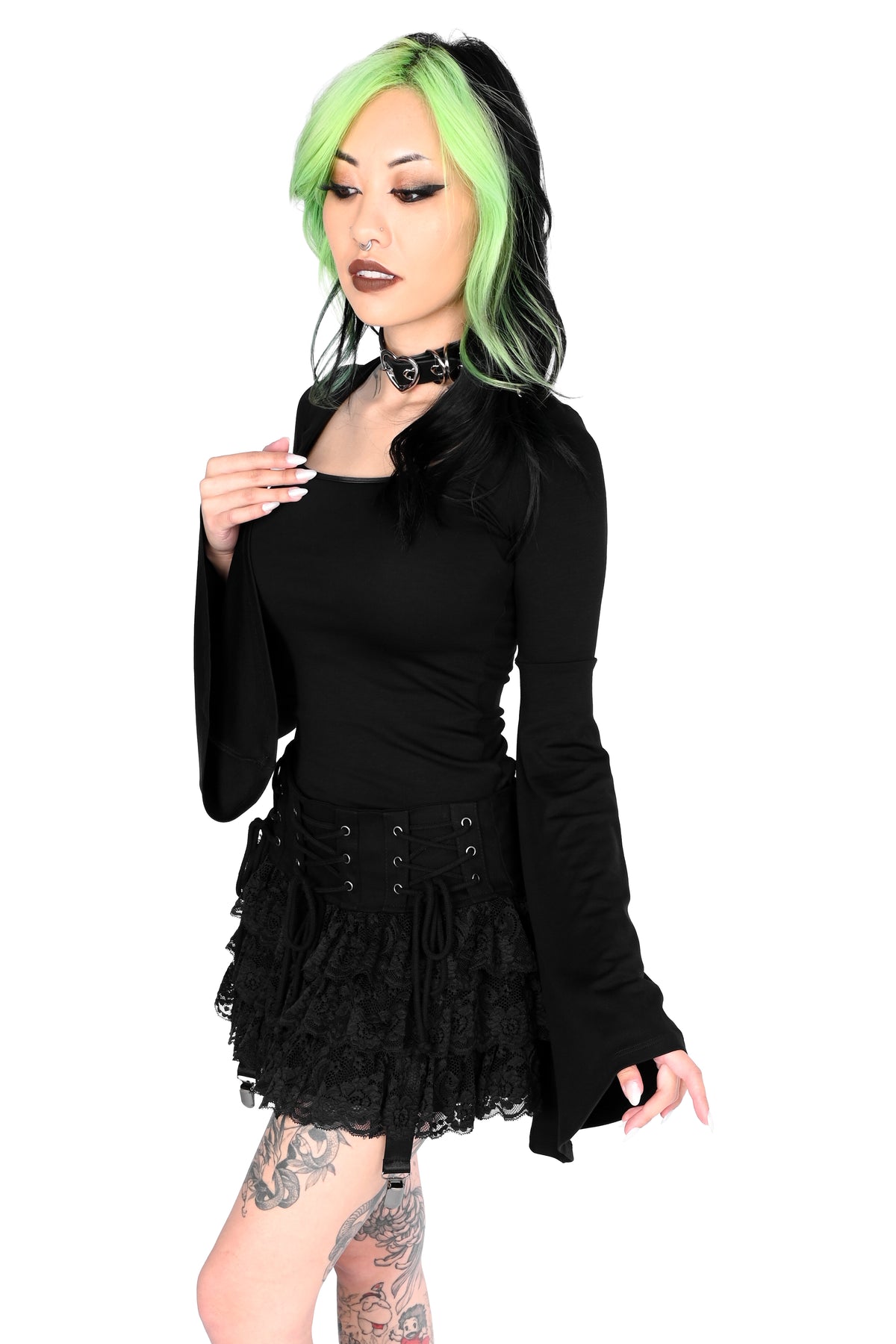 Our Alexa Bell Sleeve Top is back and now full length, not cropped.