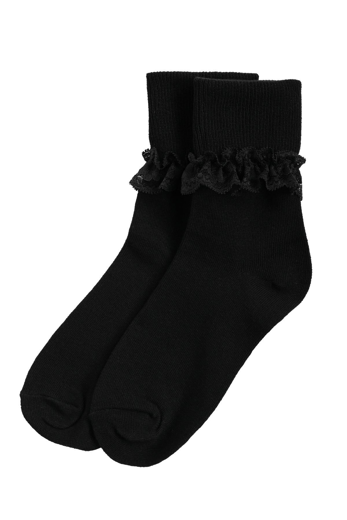 Cutie little black fold over ankle socks, with a black delicate lace detail for the trim.